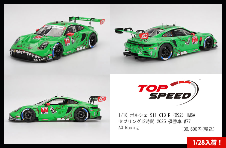 Top Speed 1/18 ポルシェ 911 GT3 R (992) IMSA セブリング12時間 2025 優勝車 #77 AO Racing